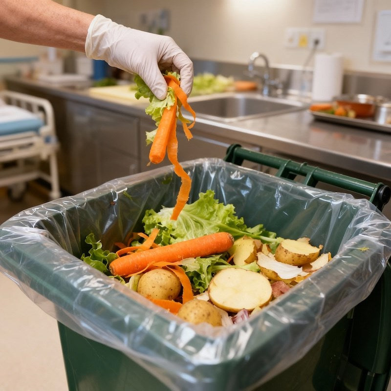 Run a plastic-free organic waste program at scale. This dissolvable 240 litre bin liner fits standard wheelie bins and large central collection bins used across hospital campuses, aged care facilities, and high-volume hospitality operations. It dissolves completely at 50°C — no liner removal, no plastic contamination, no microplastics.